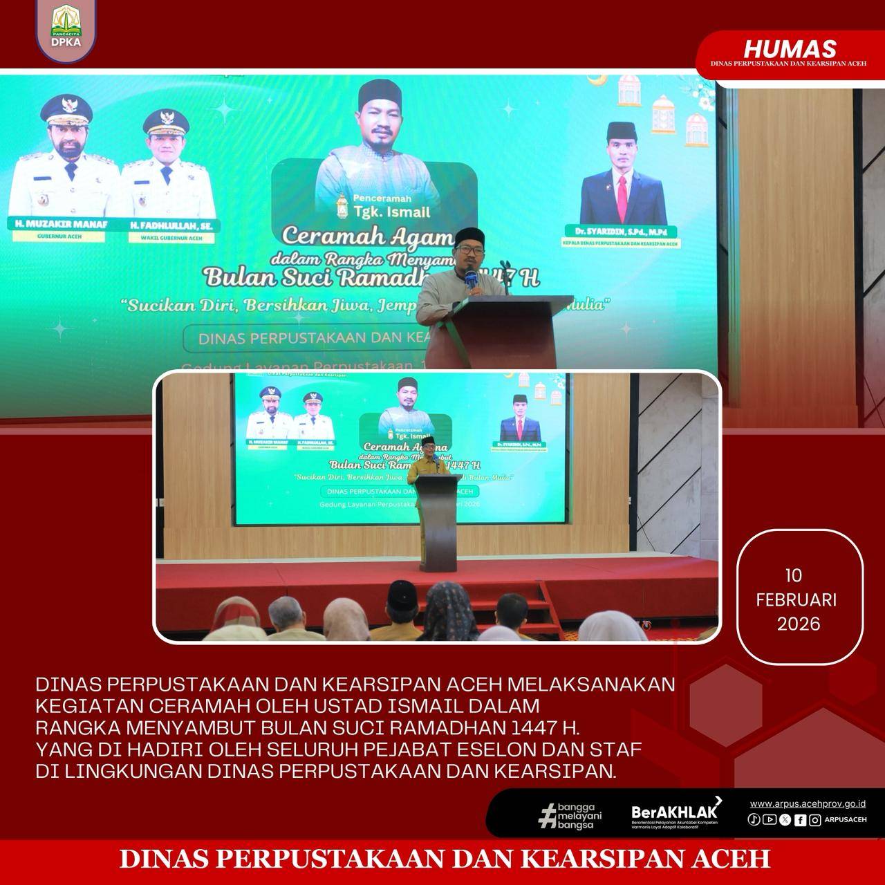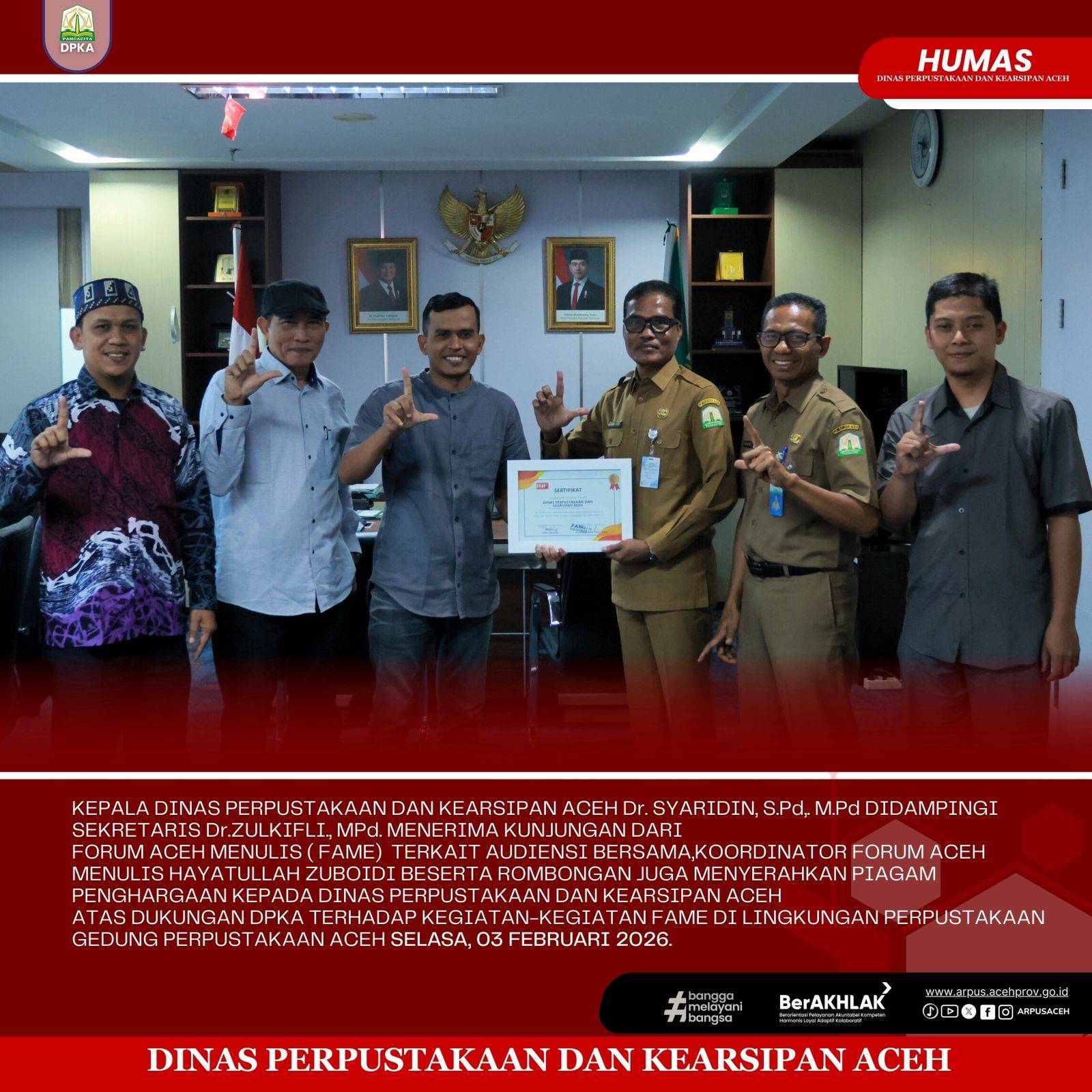 March 9, 2021Banda Aceh – Dinas Perpustakaan dan Kearsipan Aceh beserta Pengurus Daerah Ikatan Pustakawan Indonesia (IPI) wilayah Aceh melakukan audiensi dengan… [...]