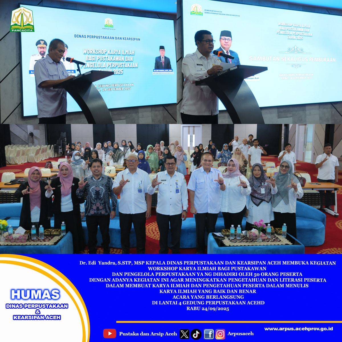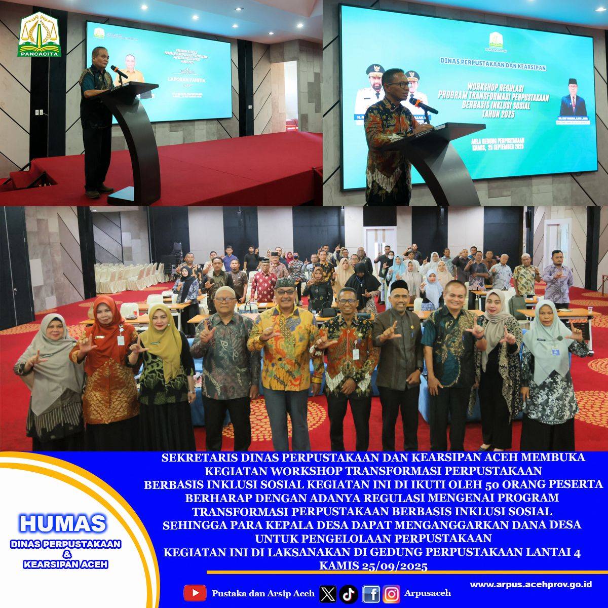 March 19, 2025Dinas Perpustakaan dan Kearsipan Aceh Menyelenggarakan Bimtek Kepenulisan Berbasis Konten Budaya Lokal dengan ketentuan sebagai berikut: A. Ketentuan dan Persyaratan… [...]
